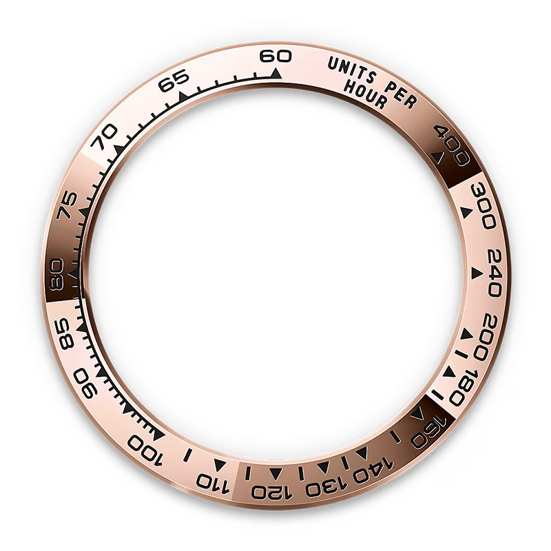 Bezel – Fixed, with engraved tachymetric scale, in 18 ct Everose gold